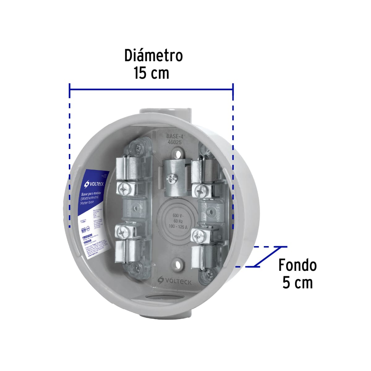 Base para watthorímetro, 4 terminales, Volteck