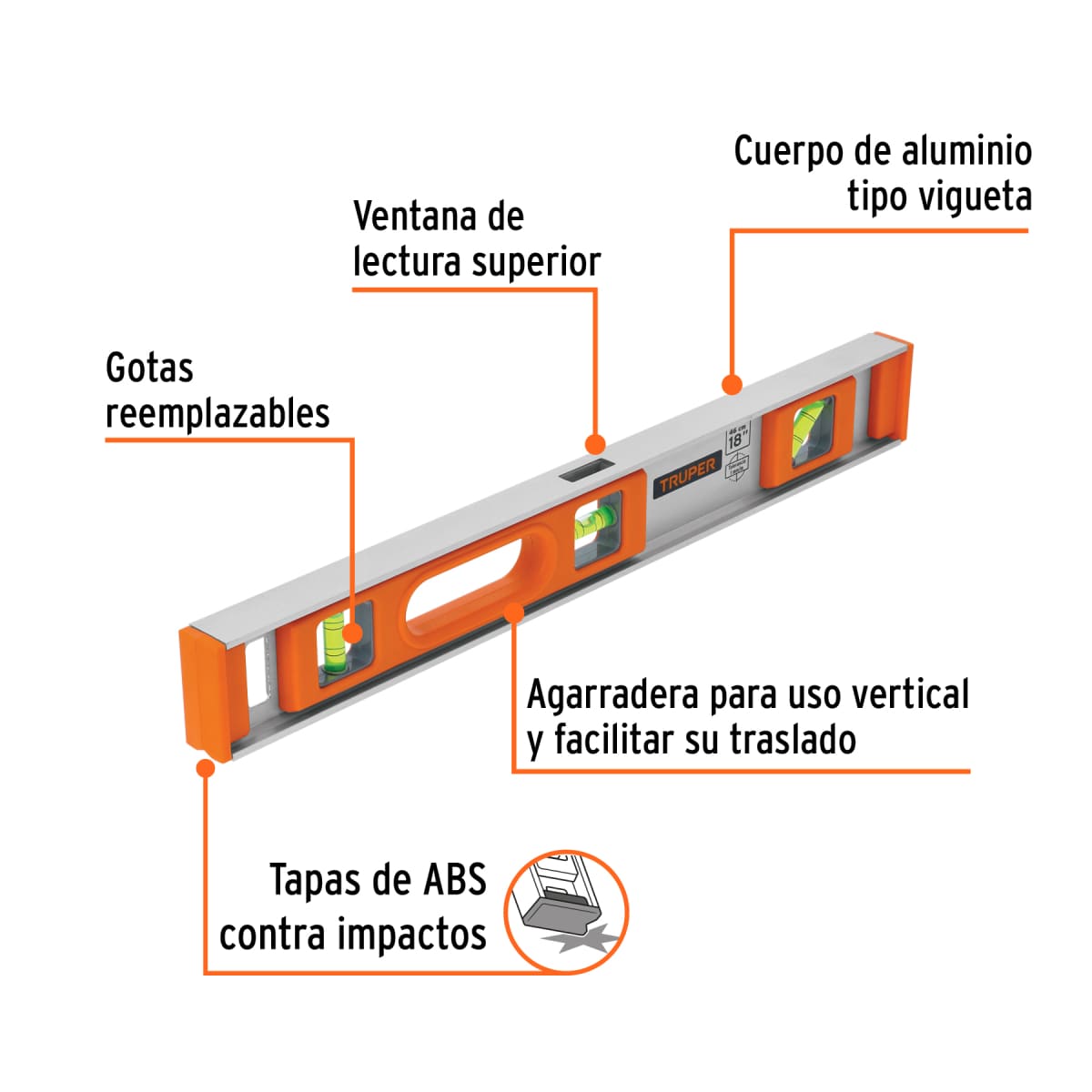 Nivel profesional de 18″ con protección de ABS, Truper cod:17034