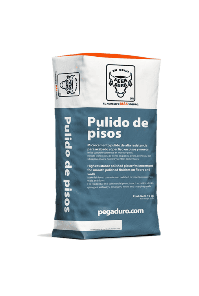 Mortero súper fino, de cemento Portland, ideal para hacer pulidos e imitar concreto pulido en pisos y muros. Se aplica en capa muy delgada, y es de alta resistencia al tráfico pesado y a la intemperie. Se aplica sin presentar dificultad, pega en seco casi sobre cualquier superficie. Se puede pulir, requemar y brillar con sorprendente facilidad. Permite realizar acabados que hasta antes de éste producto parecían casi imposibles, resulta muy útil para embellecer pisos o muros donde no puede aplicarse baldosas, duela o parquet, como es la vivienda popular. Puede pigmentarse con oxidantes ácidos para concreto.