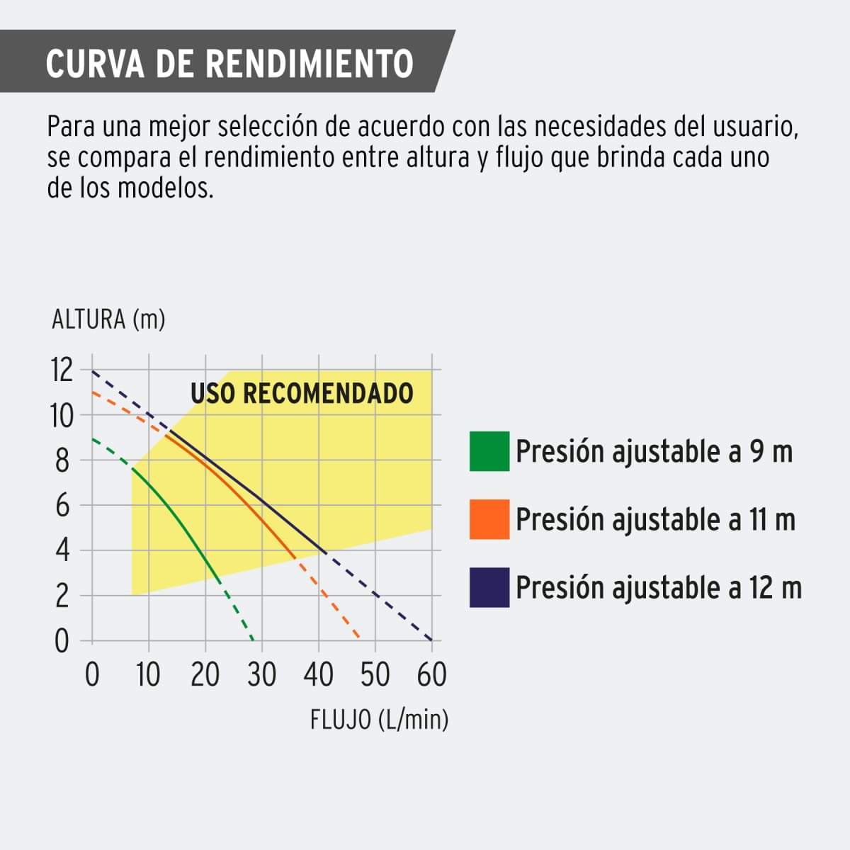 | Presión ajustable | 9, 11 y 12 m |